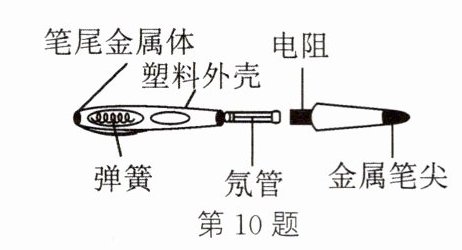 10.一种试电笔的构造如图所示,下列关于它的作用或使用描述正确的是( )