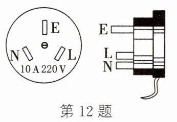 12.如图所示为家庭电路中的三孔插座和三脚插头示意图。下列说法中正确的是( )