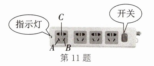 11.(十堰中考)如图是常用的插线板,闭合开关,指示灯发光,且插孔可以提供工作电压,下列说法正确的是( )