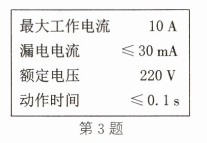 3.(黔西南中考)暑假的某天下午,小红的妈妈在用电饭锅煮饭,小红看着电视节目。当她用遥控器将待机的空调开机时,家里的空气开关“跳闸”了,则“跳闸”的原因是同时工作的用电器________过大。根据家里空气开关上的铭牌,如图所示,小红建议爸爸妈妈应该更换____________大一些的空气开关。