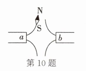10.(淮南模拟)如图将一枚小磁针放在两个磁极间,磁极间磁感线分布和小磁针静止时的指向如图所示,则下列关于a、b两个磁极的判断正确的是( )