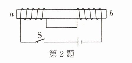 2.如图所示,两线圈宽松地套在光滑的玻璃柱ab间用柔软的导线相连。当S闭合时,两线圈将互相________。若对调电源正负极,则两线圈将互相________。(填“吸引”“排斥”或“都不动")