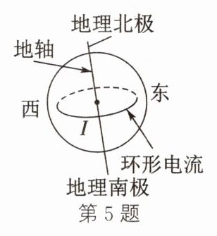 5.(2023.马鞍山二模)19世纪,安培提出假设:地球的磁场是由围绕地轴的环形电流I引起的。可利用安培定则判断出图中环形电流I的方向是________。(请从正面观察,填“自东向西”或“自西向东”)。