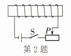 2.如图所示,闭合开关S后,螺线管右侧为________极,滑动变阻器的滑片P向左移动时,螺线管的磁性变________。