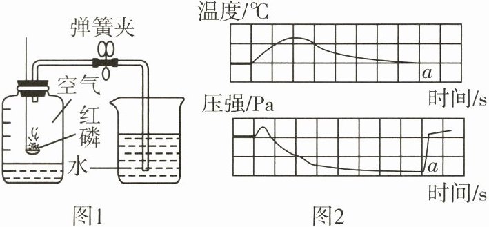 1. 在利用红磷燃烧测定空气中氧气含量的实验中,用传感器记录集气瓶中压强、温度随时间变化的情况,如图1、2所示,其中a点是打开弹簧夹的时刻。下列说法不正确的是( )