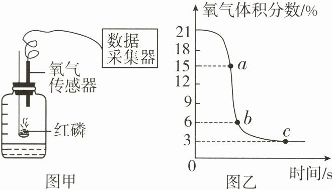 2. 探究实验也要“数字化”。某同学利用足量红磷在空气中燃烧,通过氧气传感器来监测燃烧过程中氧气含量的变化,如图甲、乙所示,下列判断正确的是( )