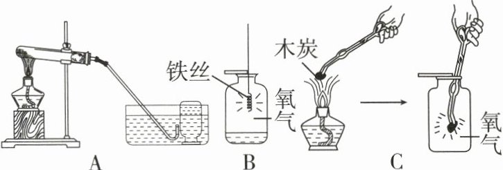 (3) 图C可观察到木炭在氧气中燃烧,____,放热。木炭在氧气中燃烧比在空气中更剧烈的原因是______________。