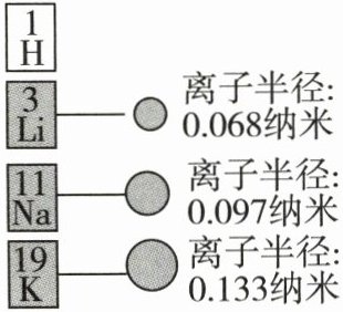 (2)研究表明,半径越大的金属离子越容易在电池正负极之间移动,充电速度越快。如图是锂、钠、钾三种金属的离子半径大小,电池容量相同的这三种电池,充满电的时间最短的是__________电池。