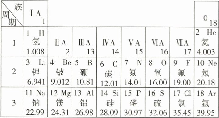 10.元素周期表是学习和研究化学的重要工具,如图所示是元素周期表的一部分。