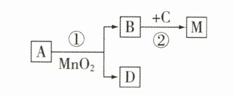 (1)图中A、B、C、D、M都是第一、二单元里见过的物质,它们之间有以下的转化关系。已知A是无色液体,C的最外层电子数是次外层电子数的2倍,M气体能使澄清石灰水变浑浊。请回答下列问题: