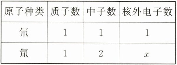 ①氘和氚属于 ________(填“同种”或“不同种”)元素的原子,上表中x = ________。
