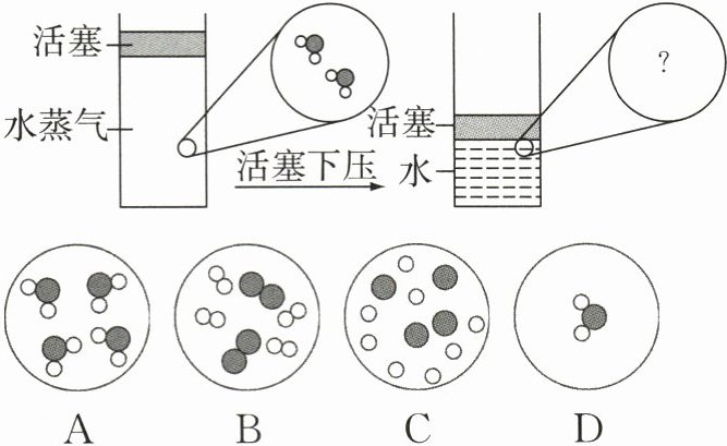 (2)压缩容器上方的活塞,容器中的水蒸气发生液化,如下图所示。下列选项中,最能表示水液化后相同空间内粒子分布的是 ________(填字母);