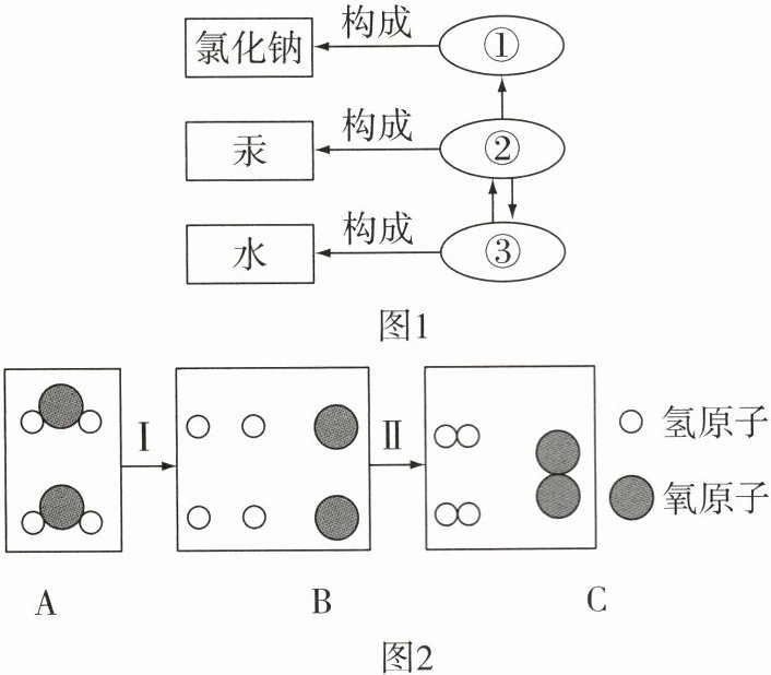 (1)物质的构成关系如图1所示,图中③表示的是 ________。氯化钠是由 ________(填具体粒子的符号)构成的。