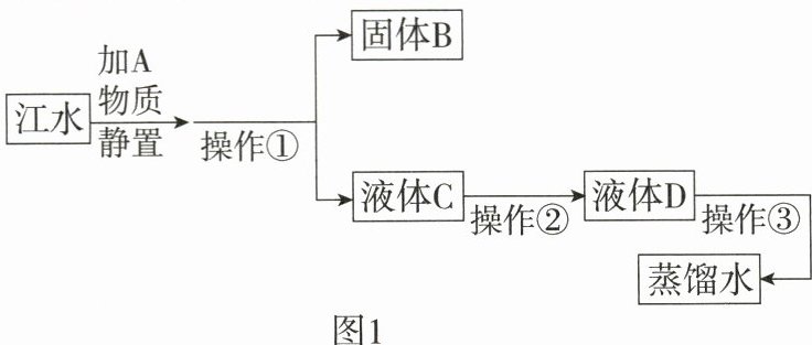 14. 自来水大多是由各地的地表水生产的,某兴趣小组在实验室模拟水厂将浑浊的江水或河水净化成自来水,并最终制成蒸馏水。实验流程如图1: