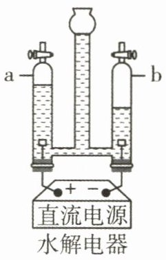 如右图,在水电解器的玻璃管中注满水,接通直流电源。一段时间后,发现两电极的现象是_______。