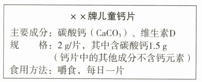 (3)每片钙片的质量为2g,其中含碳酸钙1.5g,则每片钙片中含钙元素的质量为