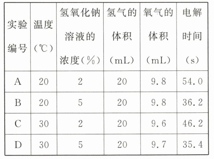 为研究影响电解水反应速率的因素,小组利用图2装置进行了实验探究,数据记录如下表所示: