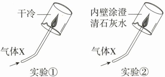 12. 某同学为了检验气体X(纯净物)的元素组成,进行了如图所示实验。观察到实验①中干冷烧杯内壁有水珠,实验②中澄清石灰水变浑浊。则对气体X分析正确的是