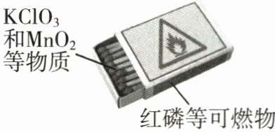 11. 安全火柴梗头及火柴盒侧面的物质如图所示,当两者摩擦时,生热点燃红磷而使火柴梗着火。按要求填空: