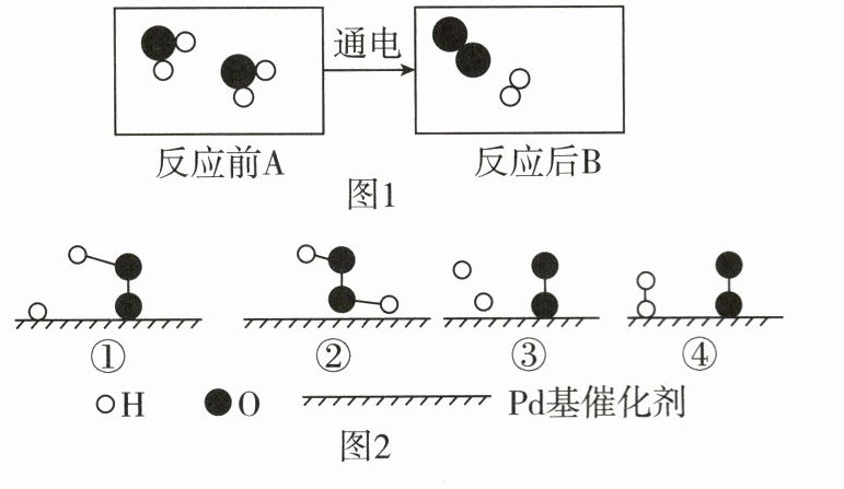10. 电解水能生成氢气和氧气,氢气和氧气在Pd基催化剂表面可反应生成过氧化氢,其微观示意图如图1、图2所示。