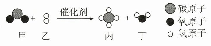 7. 我国天宫空间站常用水气整合系统消除空间站内的$CO_{2}$,实现资源的循环利用。如图是$CO_{2}$和$H_{2}$在催化剂的作用下充分反应的微观示意图,下列说法正确的是 ( )
