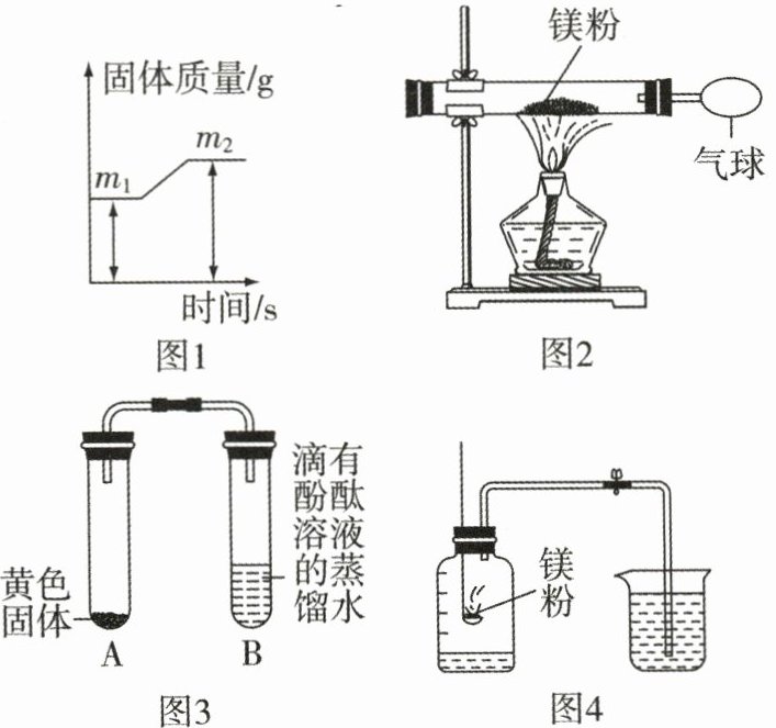 (1)镁条在空气中完全燃烧后,固体质量变化如图1所示,$m_{1}<m_{2}$的原因是______________________________。