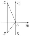 则BC=0.5x,AC=5,依题意,AB=3,∠BAC=180°−38°−22°=120°,由余弦定理可得$BC^{2}=AB^{2} + AC^{2} - 2AB \cdot AC\cos 120°$,所以$BC^{2}=49$,所以BC=7,解得x=14.又由正弦定理得$\sin\angle ABC=\frac{AC \cdot \sin\angle BAC}{BC} = \frac{5 × \frac{\sqrt{3}}{2}}{7} = \frac{5\sqrt{3}}{14}$,所以∠ABC=38°,又∠BAD=38°,所以BC//AD,故缉私艇以每小时14海里的速度向正北方向行驶,恰好用0.5小时截住该走私船.