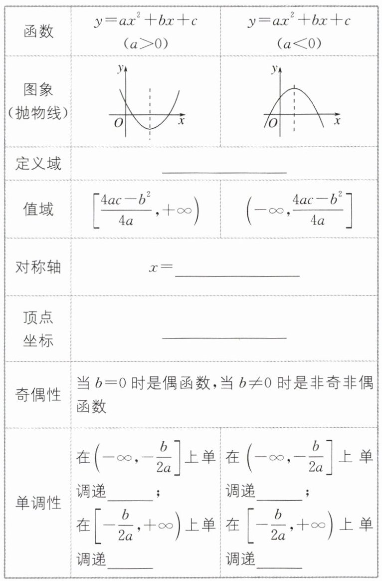 2.R $\frac{b}{2a}$ $(\frac{-b}{2a},\frac{4ac - b^{2}}{4a})$ 减 增 增 减