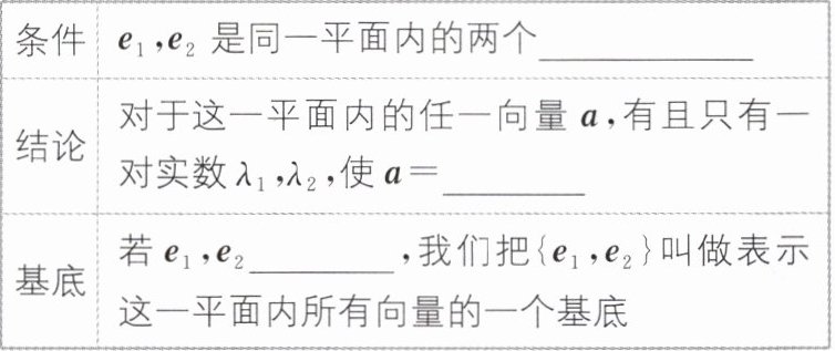 1.不共线向量 $\lambda_1\boldsymbol{e}_1+\lambda_2\boldsymbol{e}_2$ 不共线