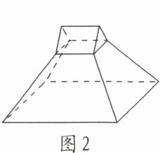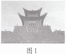 (2)(2024·兰州诊断)攒尖是中国古建筑中屋顶的一种结构形式,兰州市著名景点三台阁(如图1)的屋顶部分是典型的攒尖结构.如图2所示是某研究性学习小组制作的三台阁仿真模型的屋顶部分,它可以看作是不含下底面的正四棱台和正三棱柱的组合体,已知正四棱台上底边、下底边、侧棱的长度(单位:$dm$)分别为$2$,$6$,$4$,正三棱柱各棱长均相等,则该结构的表面积为______$dm^2$.