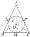 且$M$,$N$,$P$分别为切点,$M$为$BC$的中点,设内切圆的圆心为$O$,连接$AM$,$OB$,$OC$,$ON$,$OP$,