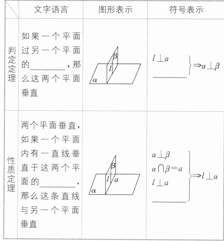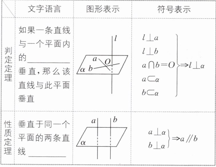 一条直线都垂直,我们就说直线 $ l $ 与平面 $ \alpha $ 互相垂直.(2) 直线与平面垂直的判定定理与性质定理