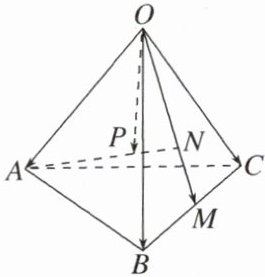 如图,$M$ 是四面体 $OABC$ 的棱 $BC$ 的中点,点 $N$ 在线段 $OM$ 上,点 $P$ 在线段 $AN$ 上,且 $MN=\frac{1}{2}ON$,$AP=\frac{3}{4}AN$,则 $\overrightarrow{OP}=$