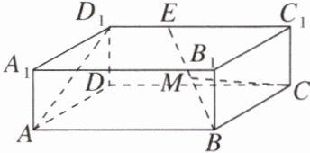 训练1 (2025·唐山质检)如图,在长方体$ABCD - A_1B_1C_1D_1$中,$AB = BC = 6$,点$E$在线段$C_1D_1$上,且$2D_1E = EC_1$,$M$为线段$BE$的中点,若$BE = 2\sqrt{14}$,则异面直线$AD_1$与$CM$所成角的余弦值为