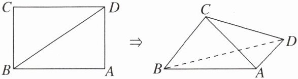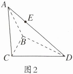训练2 如图1,$\angle ABC = \angle BCD = 90°$,$AB = BC = 2$,$CD = 4$,将图1中的$\triangle ABC$沿着$BC$翻折得到图2所示的三棱锥,棱$AD$上的点$E$满足$\overrightarrow{AE} = \lambda\overrightarrow{AD}(0 < \lambda < 1)$.