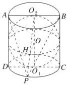 (2023·南通模拟)已知在圆柱 $O_1O_2$ 内有一个球 $O$,该球与圆柱的上、下底面及母线均相切.过直线 $O_1O_2$ 的平面截圆柱得到四边形 $ABCD$,其面积为 8.若 $P$ 为圆柱底面圆弧 $\overset{\frown}{CD}$ 的中点,则平面 $PAB$ 与球 $O$ 的交线长为________.