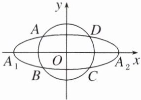 训练 5 如图,椭圆 $ C_0:\frac{x^2}{a^2} + \frac{y^2}{b^2} = 1(a > b > 0) $,动圆 $ C_1:x^2 + y^2 = t_1^2 $,$ b < t_1 < a $。点 $ A_1 $,点 $ A_2 $ 分别为椭圆 $ C_0 $ 的左、右顶点。动圆 $ C_1 $ 与椭圆 $ C_0 $ 相交于 $ A $,$ B $,$ C $,$ D $ 四点。求直线 $ AA_1 $ 与直线 $ A_2B $ 的交点 $ M $ 的轨迹方程。