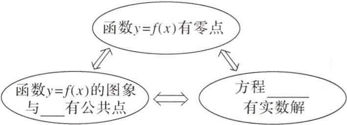 (2) 函数的零点、函数的图象与 $ x $ 轴的交点、对应方程的根的关系: