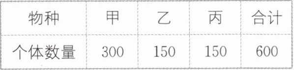 (2)香农 - 威纳指数$ ( H ) $是生态学中衡量群落中生物多样性的一个指数,其计算公式是$ H = - \sum _ { i = 1 } ^ { n } p _ { i } \cdot \log _ { 2 } p _ { i } $,其中$ n $是该群落中生物的种数,$ p _ { i } $为第$ i $个物种在群落中的比例,下表为某个只有甲、乙、丙三个种群的群落中各种群个体数量统计表,根据表中数据,该群落的香农 - 威纳指数值为 (