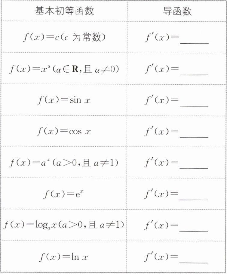 $$ $_$.(2) 函数 $ y = f(x) $ 的导函数 $ f'(x) = \lim_{\Delta x \to 0} \frac{f(x + \Delta x) - f(x)}{\Delta x} $.