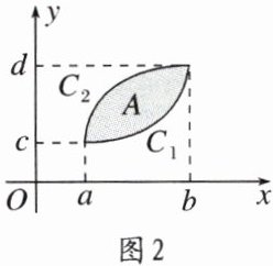 训练 3 (2025·武汉模拟)我们知道,通过牛顿 - 莱布尼茨公式可以求曲线梯形(如图 1 所示的阴影部分)的面积 $A=\left\{\begin{array}{l}\int_a^b f(x) \mathrm{d} x, f(x)>0, \\ -\int_a^b f(x) \mathrm{d} x, f(x)<0,\end{array}\right.$ 其中 $\int_a^b f(x) \mathrm{d} x=F(b)-F(a)$,$F^{\prime}(x)=f(x)$. 如果平面图形由两条曲线围成(如图 2 所示的阴影部分),曲线 $C_1$ 可以表示为 $y=f_1(x)$,曲线 $C_2$ 可以表示为 $y=f_2(x)$,那么阴影区域的面积 $A=\int_a^b\left(f_2(x)-f_1(x)\right) \mathrm{d} x$,其中 $\int_a^b\left(f_2(x)-f_1(x)\right) \mathrm{d} x=\int_a^b f_2(x) \mathrm{d} x-\int_a^b f_1(x) \mathrm{d} x$.