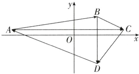 16. (15分)如图,已知在平面直角坐标系中不重合的四点$A,B,C,D$满足以下条件:$\overrightarrow{AB}=(6,1),\overrightarrow{BC}=(k,-1),\overrightarrow{CD}=(-2,-3)$.