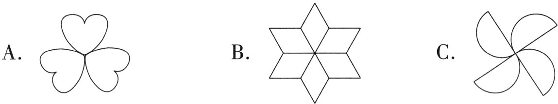 3. 玲玲画的下面三幅图案中, ( )可以由一个基本图形连续旋转90°得到。