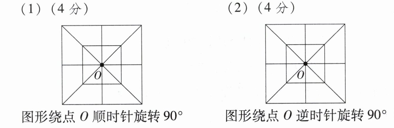 (1)图②是图①先向右平移( )格,再向下平移( )格,然后绕点O逆时针旋转( )°得到的。