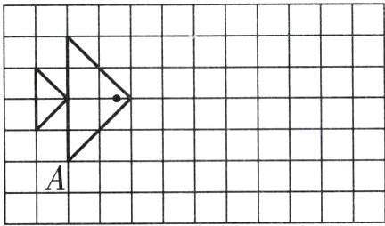右图方格纸中有一条“小鱼”,请你画出它先向右平移4格后的图形,再画出平移后的图形绕点A顺时针旋转90°后的图形。