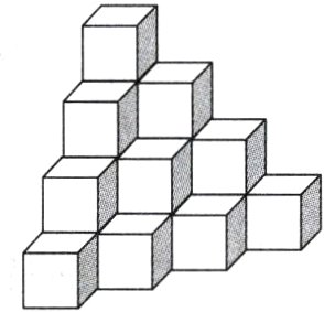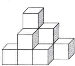 3. 在图中取走哪一个小正方体后,从前面、上面、右面看到的图形不变?请在这个小正方体上画“△”。(3分)