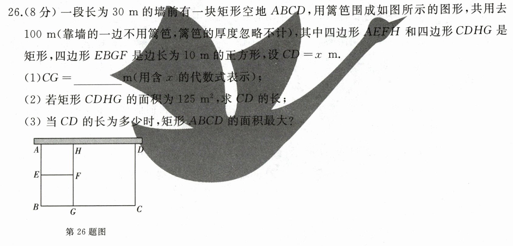 即当CD的长为20 m时,矩形ABCD的面积最大.