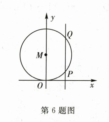 6.如图,⊙M与x轴相切于原点,平行于y轴的直线交⊙M于P,Q两点,点P在点Q的下方,若点P的坐标是(2,1),则圆心M的坐标是 ( )