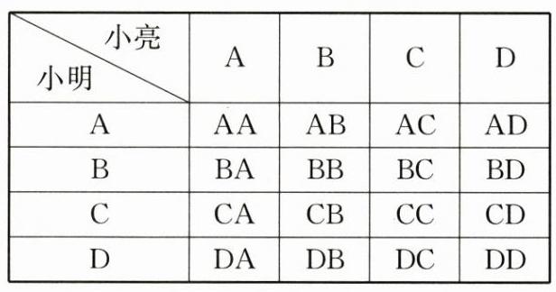 共有16种等可能的结果,其中小明和小亮参加同一项目的结果有4种,