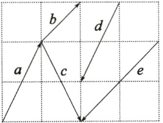 2. 在如图所示的向量a,b,c,d,e中(小正方形的边长为1),判断是否存在下列关系的向量: